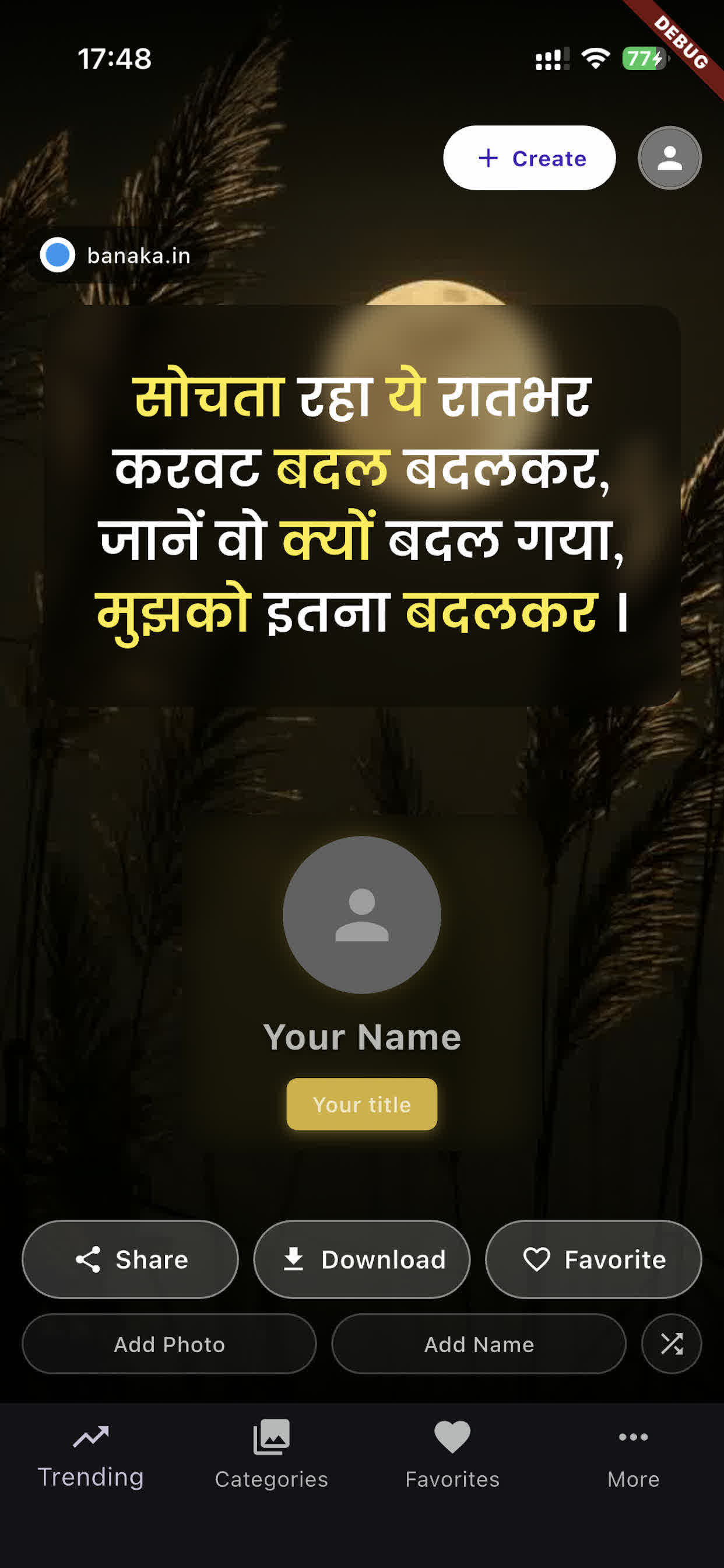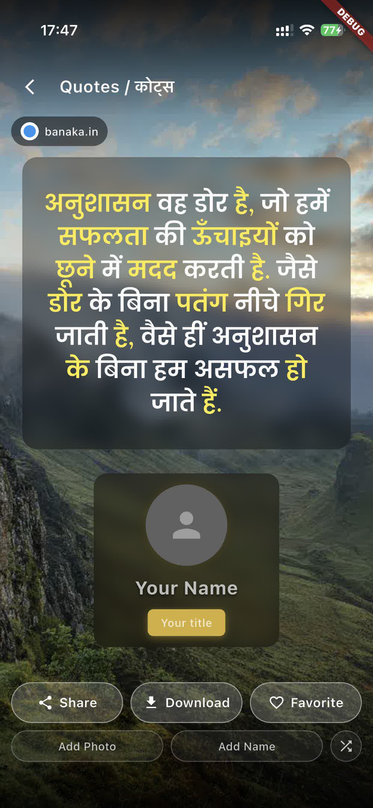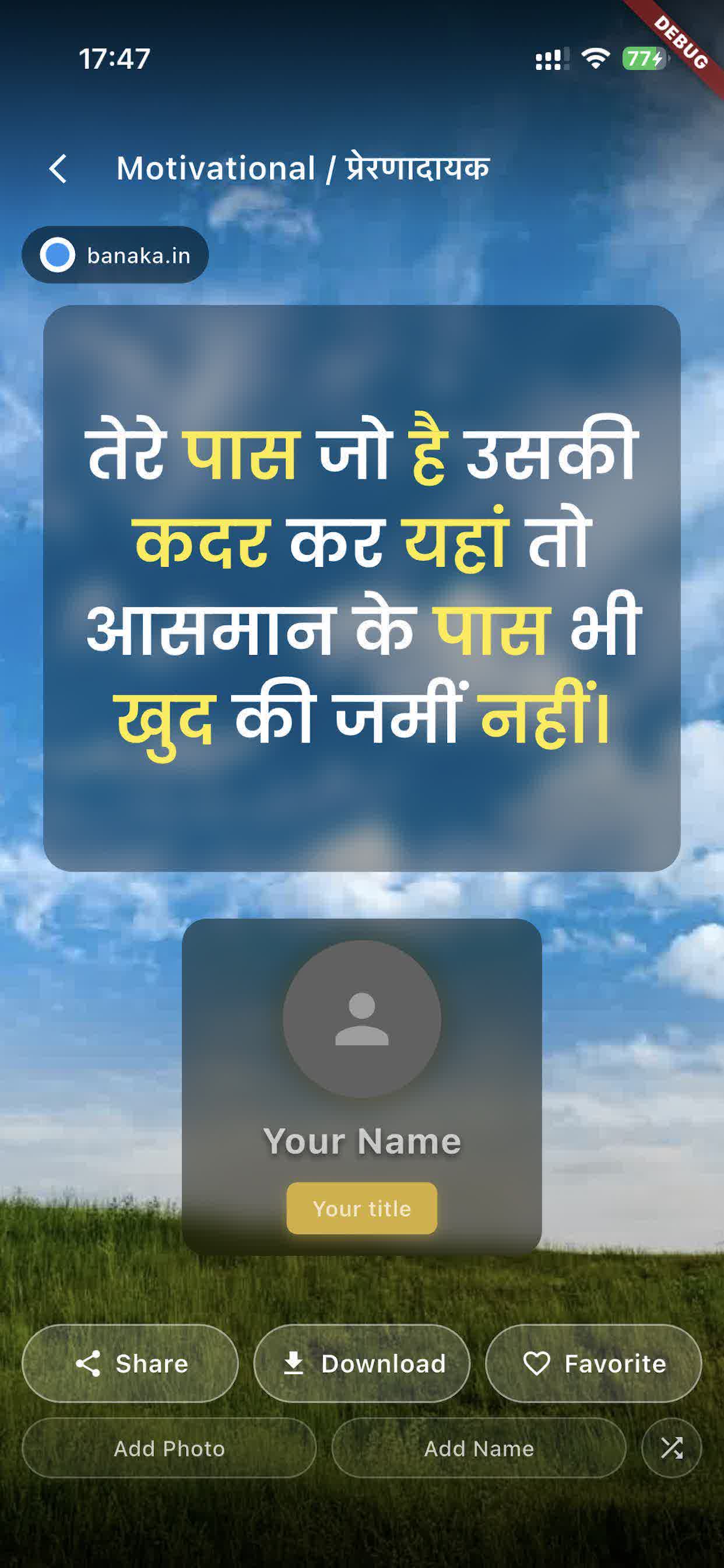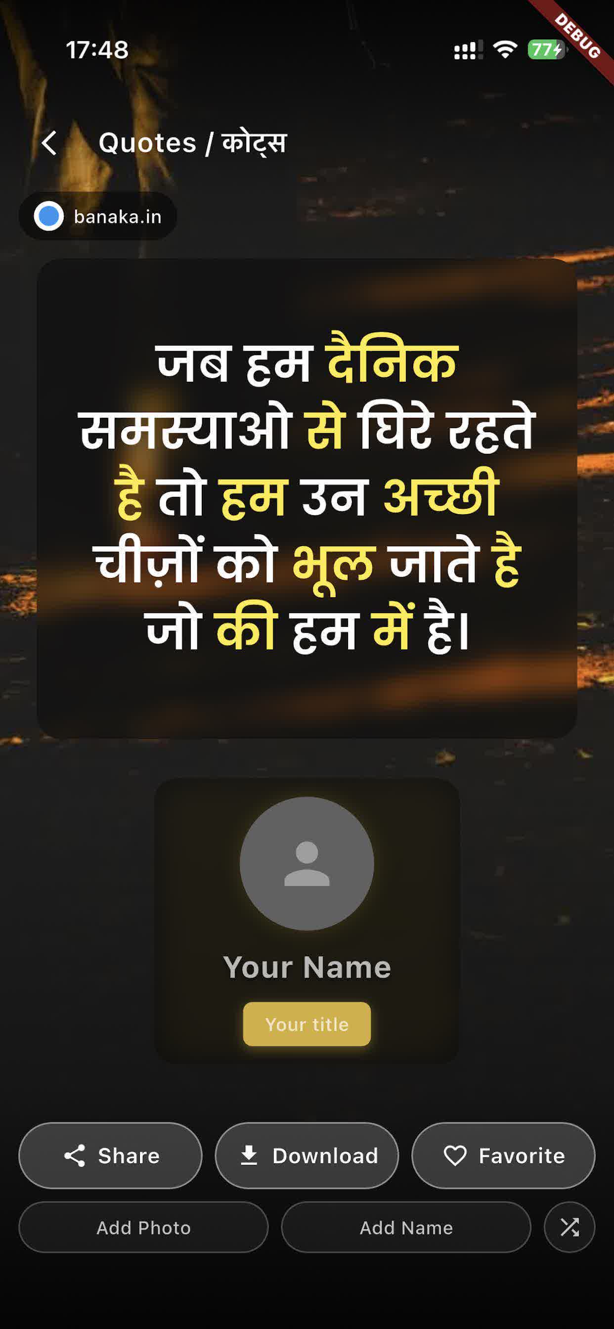 Browse thousands of status quotes and DPs. Add your name, title and profile photo on cards, save favorites, and share to WhatsApp or save to gallery.